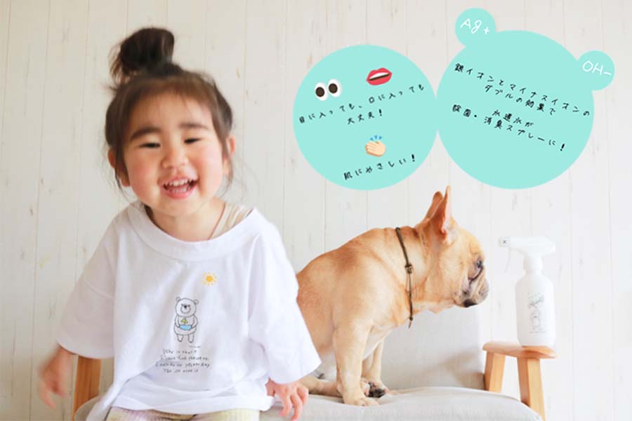 水で作る除菌・消臭スプレーだから赤ちゃん・ペット・大人・家族みんなにやさしい。
